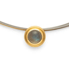 18 Karat gelbvergoldetes, mattiertes und poliertes 925/- Sterlingsilber trifft auf einen zauberhaft changierenden Labradorit mit 2,63 Karat. Ein wertig gearbeitetes Designschmuckstück mit Unikatcharakter, welches für die Ewigkeit geschaffen ist. Perfekt in Kombination mit den dazugehörigen Ohrsteckern und dem passenden Ring.