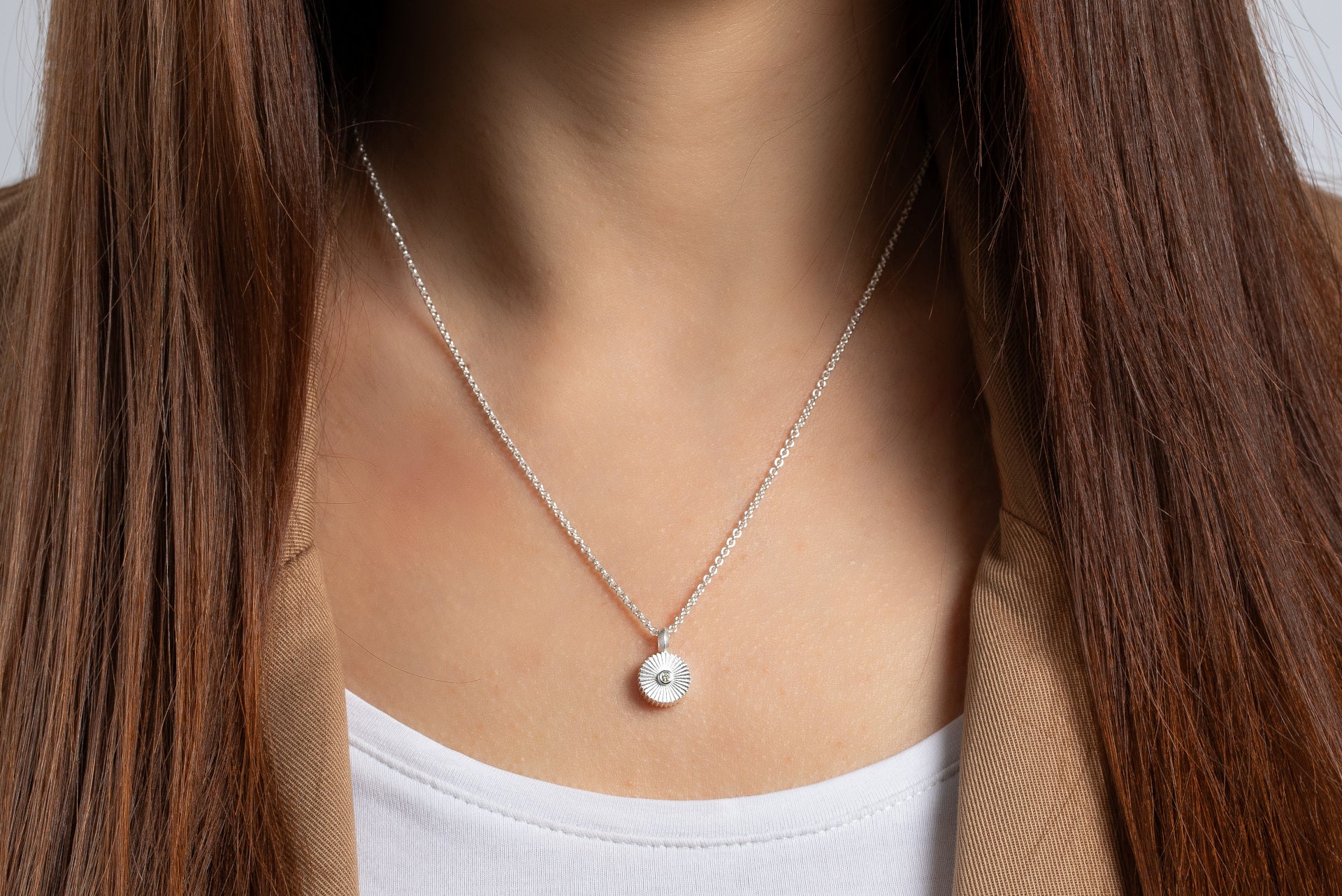 Eine durchweg charakteristische Oberflächenstruktur trifft auf einen funkelnden und mittig positionierten Brillant (0,02ct). Inspiriert von einem Goldschmiedewerkzeug verzaubert der Designer Thomas Mayer mit einer eigenen Handschrift. Ein wertvoll verarbeitetes Schmuckstück mit dem Zeug zum absoluten Lieblingsschmuckstück. Erhältlich mit passenden Ohrsteckern.