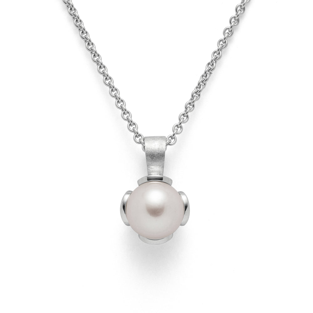 Perlen stehen für Reinheit, Eleganz und für unnachahmliche Ästhetik. Dieser edle, rhodinierte (anlaufgeschützte) Anhänger "Magic Pearl" aus mattiertem und an der Kante poliertem 925/- Sterlingsilber bringt die Perle als Symbol zeitloser Schönheit perfekt zum Ausdruck. Besonders die blätterartige Fassung macht den Anhänger zu einem besonderen Hingucker. Erhältlich mit passenden Ohrhängern und passendem Ring.
