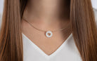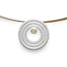Ein zauberhafter Designanhänger aus 925/- Sterlingsilber in attraktiver Ringoptik trifft auf eine mattierte und gebürstete Oberflächenstruktur. Der funkelnde Brillant mit 0,015ct, umrahmt von einer goldbelöteten* (14K) Fassung, lässt den Anhänger zu einem besonderen und modernen Schmuckstatement werden. Mit viel Liebe zum Detail wurde dieser Designanhänger von dem Goldschmiedemeister Thomas Mayer kreiert.