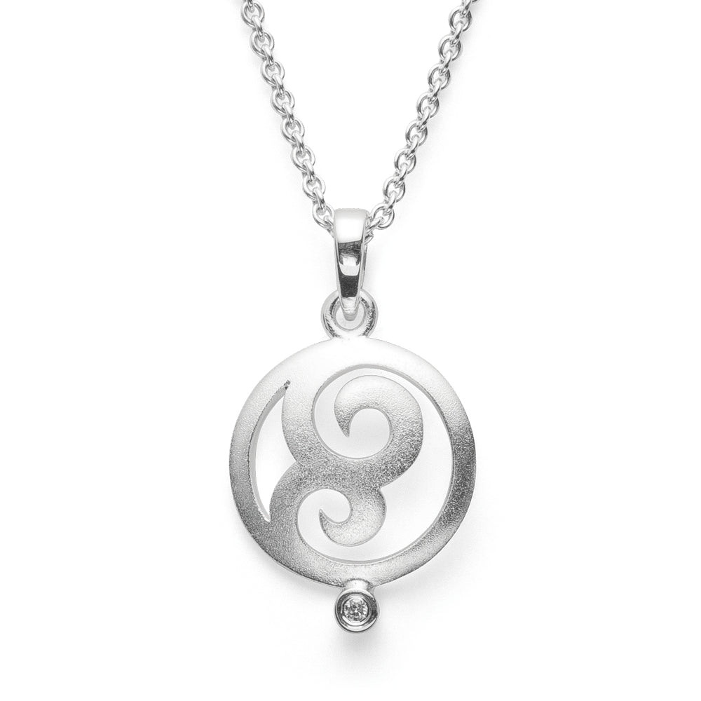 Eine sinnlich-feminine Formgebung aus sandmattiertem 925/- Sterlingsilber, die kreisrund umrahmt wird. Dieser zauberhafte Halsschmuck aus der Feder der Düsseldorfer Designerin Nadine Resch besticht durch einen funkelnden Brillant mit 0,02ct und einer einzigartigen Formgebung. Ein wertvoll verarbeitetes Schmuckstück mit dem Zeug zum absoluten Lieblingsschmuckstück.