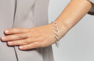 Rundlich geformte Schmuckelemente ergeben zusammengefügt ein 20 cm (+ 1 cm Verlängerungsoption) langes Armband aus mattiertem 925/- Sterlingsilber. Ein wundervoll unkompliziert daherkommendes Schmuckstück für sowohl den sportlichen als auch eleganten Anlass.