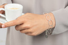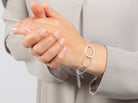 Oval geformte Schmuckelemente ergeben zusammengefügt ein 17 cm (+ 2 cm Verlängerungsoption) langes Sterlingsilber-Armband aus der Feder der bekannten Designerin Antje Liebscher. Insbesondere mit passendem Collier sorgt dieses zeitlose und zugleich sportlich-elegante Armband für eine unnachahmliche Ausstrahlung.