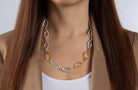 Luftig-leicht und dynamisch gestaltet - ein Designcollier der besonderen Art. Dieser charakterstarke Halsschmuck aus kratzmattiertem 925/- Sterlingsilber beeindruckt durch eine raffiniert eingedrehte Formgebung und eine einzigartige Ausstrahlungskraft. Ein attraktives und zugleich markantes Design, welches durch die vergoldeten Schmuckelemente zu einem wirkungsvollen Hingucker wird. Die Längenverstellbarkeit (3 cm) des 48 cm langen Colliers sorgt für vielfältige Einsatzmöglichkeiten und einen besonders hohen Tragekomfort. Perfekt in Kombination mit den passenden Ohrsteckern.