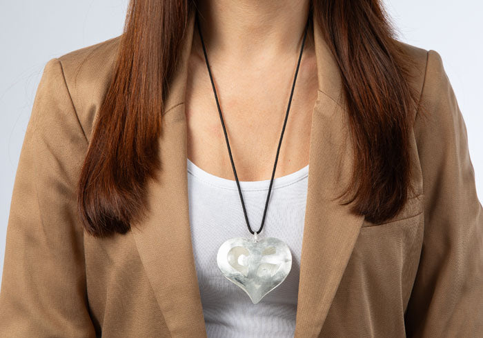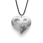 Maxi-Designanhänger "Grand Coer" für Liebhaberinnen von ausdrucksstarken und akzentuierten Designs. Strahlendes 925/-Sterlingsilber mit kraztmattierter Oberfläche und polierter Öse formt sich zu einem Halsschmuck der Extraklasse. Designt wurde dieses Schmuckstück von der renommierten deutschen Designerin Antje Liebscher, sie dich mit ihren auf den Punkt gerachten und sehr stilvollen Schmuckdesigns einen hervorragenden Namen in der Schmuckbranche gemacht hat. Die verspielt geformten Aussparungen ergeben das romantische, extrem feminine Detail des ansonsten hinten komplett geschlossenen, bauchigen Anhängers. Wir empfehlen dieses Schmuckstück an einer längeren bzw. längenverstellbaren Kette oder einem Band, zum Beipspiel aus Baumwolle wie Artikel 44350.