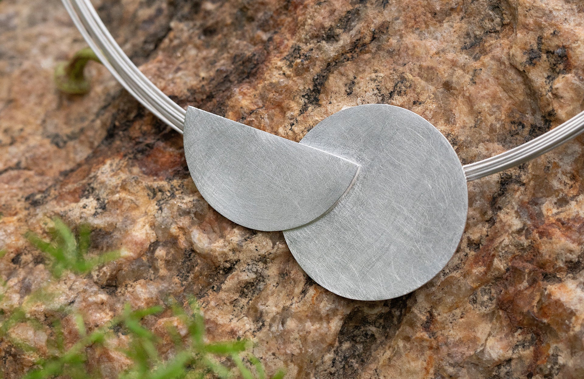 "Moonwalk Collection" - ein kratzmattierter Designanhänger aus 925/- Sterlingsilber beeindruckt durch eine geometrische und zugleich stilvolle Formgebung. Ein wahres Schmuckstatement aus der Feder der Designerin Marta Szafraniec, welches insbesondere durch die handwerkliche Perfektion zum besonderen Hingucker wird. Die versteckte Aufhängung sorgt für die besonders elegante Ausstrahlung dieses attraktiven Halsschmuckstücks. Perfekt in Kombination mit dem passenden Ring und den dazugehörigen langen oder kurzen Ohrsteckern. Das Design ist alternativ auch als Collier erhältlich.