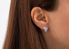 Floral inspirierte Design-Ohrstecker "Touch of Blue" (Design von Nadine Resch) aus kratzmattiertem 925/- Sterlingsilber und funkelnden, asymmetrisch platzierten Blautopasen (insgesamt 0,64ct) im runden Normalschliff, die von einer polierten Fassung umrandet sind und somit optimal zur Geltung gebracht werden. Ein zeitlos-elegantes Schmuckstück, an welchem man lange Freude haben wird. Perfekt in Kombination mit dem passendem Anhänger aus der selben Produktlinie.