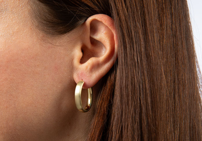 Diese elegante, oval verlaufende Scharniercreole aus mattiertem und zugleich gelbvergoldetem 925/-Sterlingsilber besticht durch eine zeitlose Optik und ein durchweg puristisches Design. Sportlich kombiniert oder für den ganz großen Auftritt - dieser Schmuckklassiker ist mannigfaltig einsetzbar und darf in keinem Schmuckkasten fehlen. Auch in pursilber sowie in poliert/vergoldet erhältlich.
