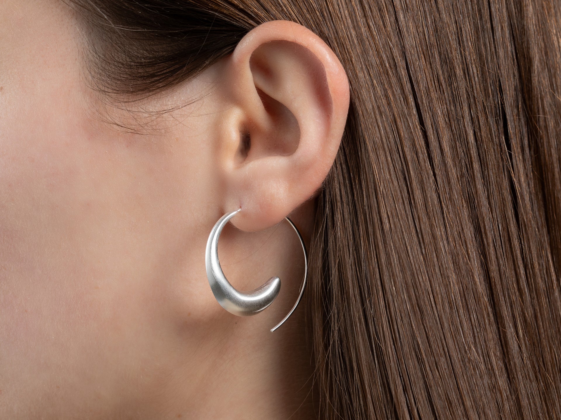 Modern, innovativ und dennoch zeitlos-elegant: Must-Have-Creolen aus 925/- Sterlingsilber mit leicht eingedrehtem Formverlauf - das perfekte Schmuckstück für zahlreiche Anlässe und Outfits.