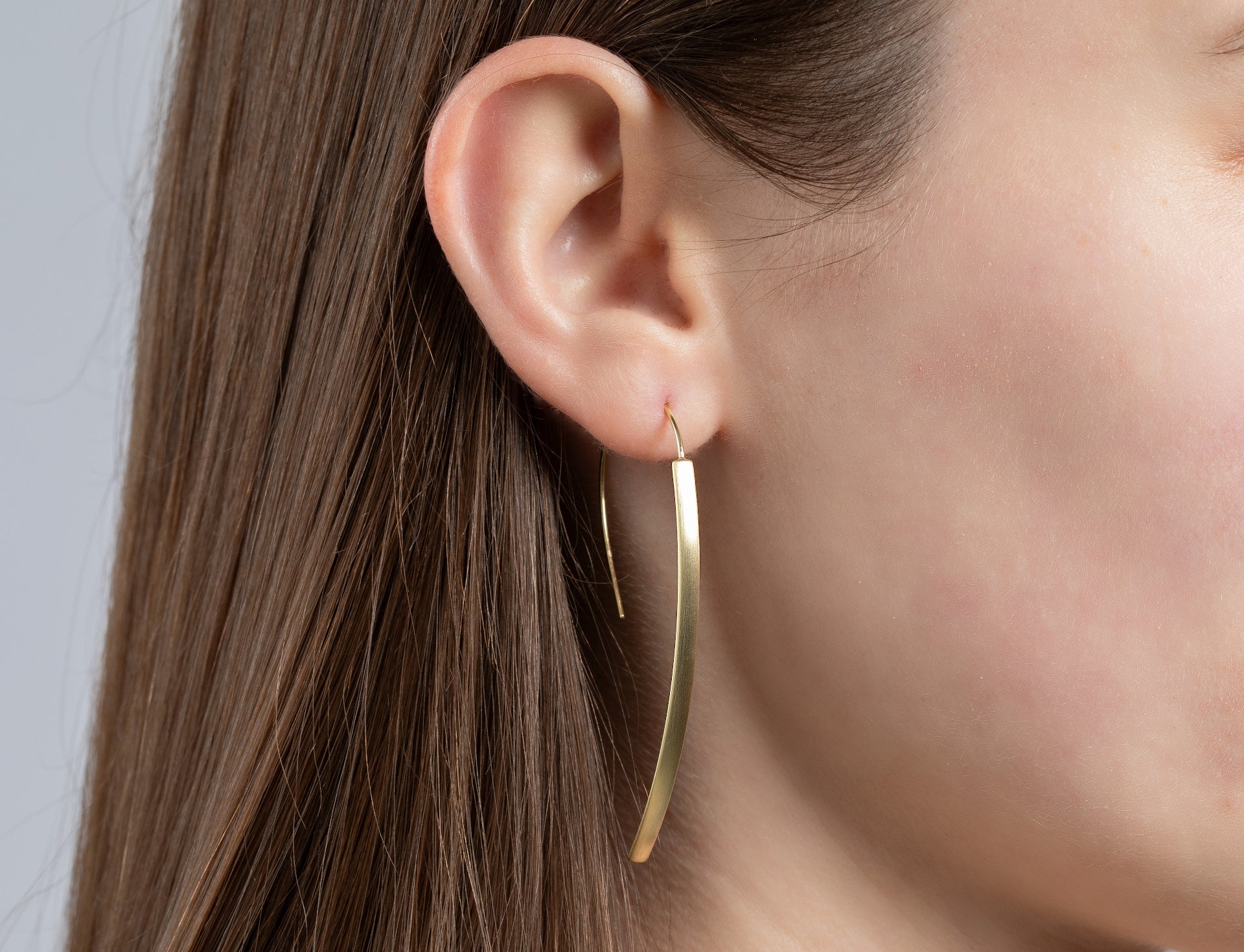 Mattiertes und vergoldetes 925/- Sterlingsilber in Kombination mit einer geradlinigen Formgebung verleiht den Ohrhängern eine moderne und zugleich elegante Ausstrahlungskraft. Ob für den Alltag oder für ein besonderes Event - dieser Ohrschmuck überzeugt für jeden Anlass! Auch in pursilber erhältlich.