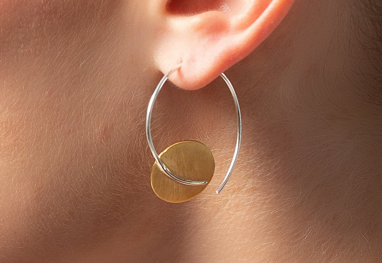 Eine geometrisch inspirierte Formgebung trifft auf eine warme 18 Karat Gelbvergoldung. Das Wechselspiel aus verschiedenen Oberflächenbearbeitungen lässt diese modernen Ohrdurchzieher zu attraktiven Hinguckern werden. Kreiert wurde das Schmuckstück von der Designerin Catherine Niegel, welches mit passendem Anhänger kombinieren werden kann.