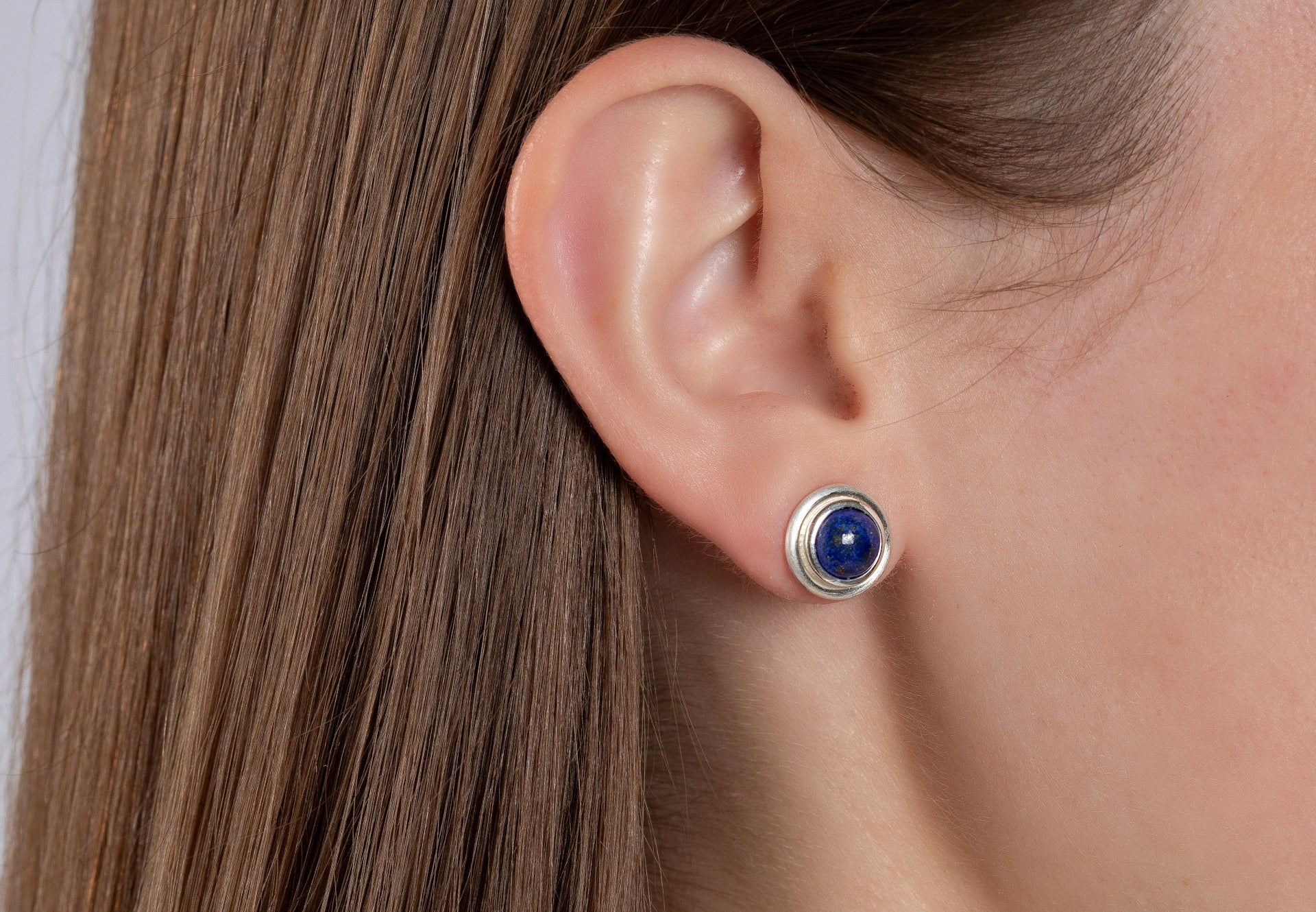 Strahlendes mattiertes und poliertes 925/- Sterlingsilber trifft auf einen zauberhaften tiefblauen Lapis mit 2,72 Karat. Ein wertig gearbeitetes Designschmuckstück, welches für die Ewigkeit geschaffen ist. Für den besseren Sitz am Ohr wird dieser Ohrschmuck mit einer großen Ohrmutter geliefert.
