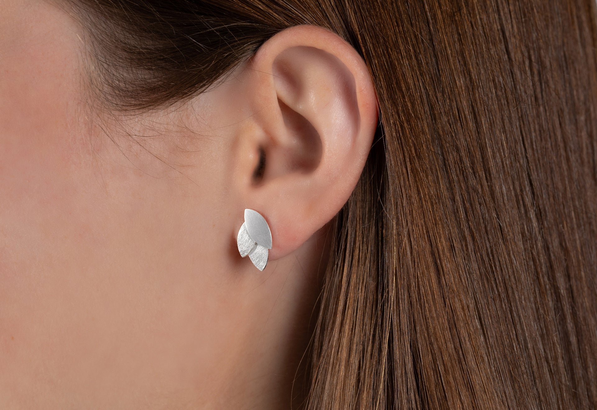 "Leaf by Leaf Collection" - zauberhafte Ohrstecker aus 925/- Sterlingsilber treffen auf eine floral inspirierte Formensprache. Die Kombination aus mattierter und kratzmattierter Oberflächenbearbeitung sorgt für eine besonders charakteristische und einzigartige Ausstrahlung der handwerklich verarbeiteten Designschmuckstücke. Wahre Schmuckallrounder zu vielen Outfits. Dieser Ohrschmuck wird mit einer großen Ohrmutter geliefert. Passend erhältlich mit dazugehörigem Ring, Anhänger und Armreif.