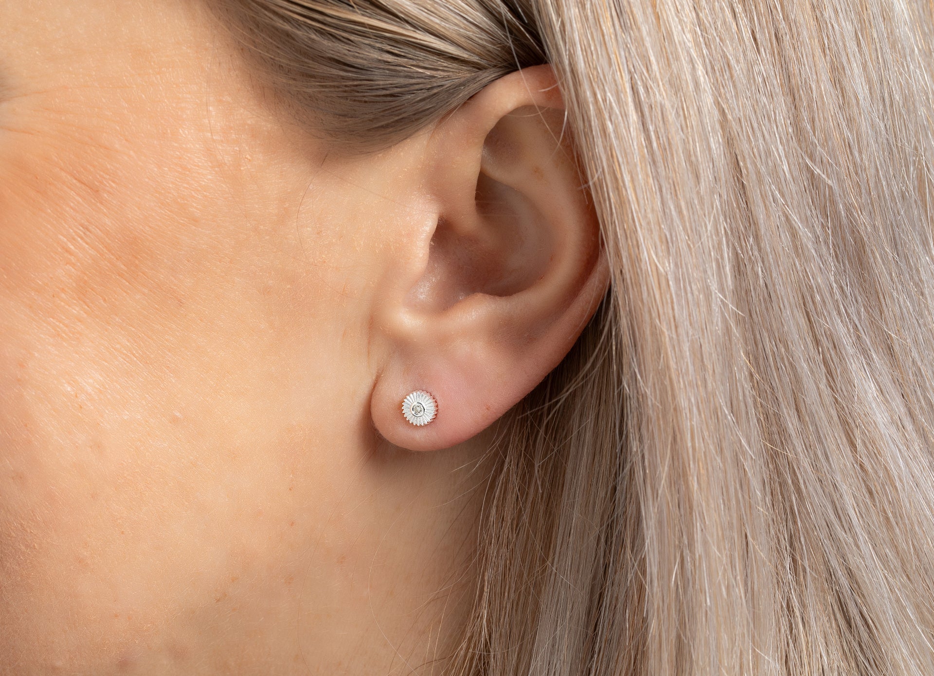 Eine durchweg charakteristische Oberflächenstruktur trifft auf einen funkelnden und mittig positionierten Brillant (insgesamt 0,02ct). Inspiriert von einem Goldschmiedewerkzeug verzaubert der Designer Thomas Mayer mit einer eigenen Handschrift. Ein wertvoll verarbeitetes Schmuckstück mit dem Zeug zum absoluten Lieblingsschmuckstück.
