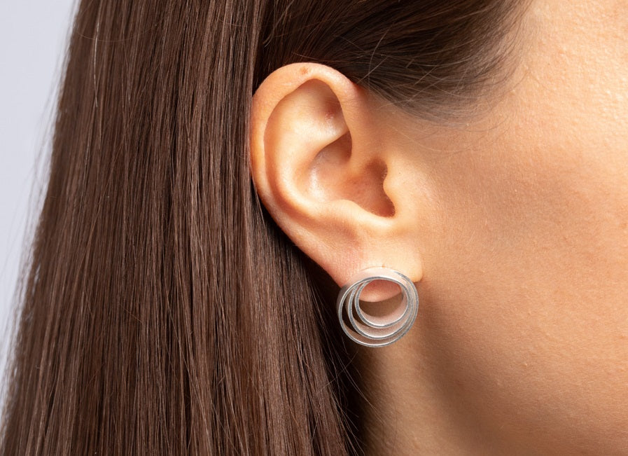 Eine dynamische und zugleich sinnlich geschwungene Formgebung sowie ein markant-charmantes Design lassen diese aus 925/-Sterlingsilber gefertigten Spiral-Ohrstecker in Sandmatt-Optik (Design by Nadine Resch) zu einem zeitlosen Schmuckstatement werden. Exemplarisch daherkommend für den hohen Anspruch an Fertigung und Form werden diese Ohrstecker zu einem Highlight der aktuellen Designschmuck-Kollektion von bastian inverun. Natürlich erhältlich mit passendem Anhänger und Ring. Auch in einer vergoldeten Version erhältlich.