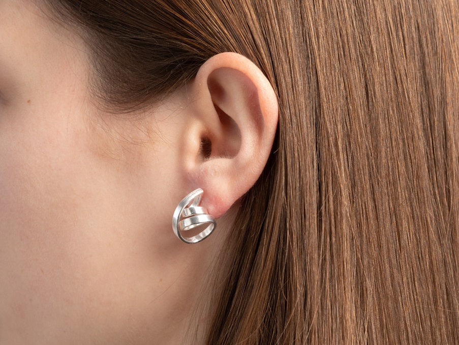 Schwungvoll gedrehtes und sich windendes 925/- Sterlingsilber formt sich zu charakterstarken Ohrsteckern aus der Feder des kreativen und renommierten Designerduos und Brüderpaars Dan und Philipp Reiffert. Die besondere Machart und die hochwertige Verarbeitung verleihen diesem besonderen Ohrschmuck das Zeug zum absoluten Lieblingsschmuckstück. Für den besonders hohen Tragekomfort am Ohr werden diese Ohrstecker mit großer Ohrmutter geliefert. Perfekt in Kombination mit passendem Ring und passendem Anhänger.