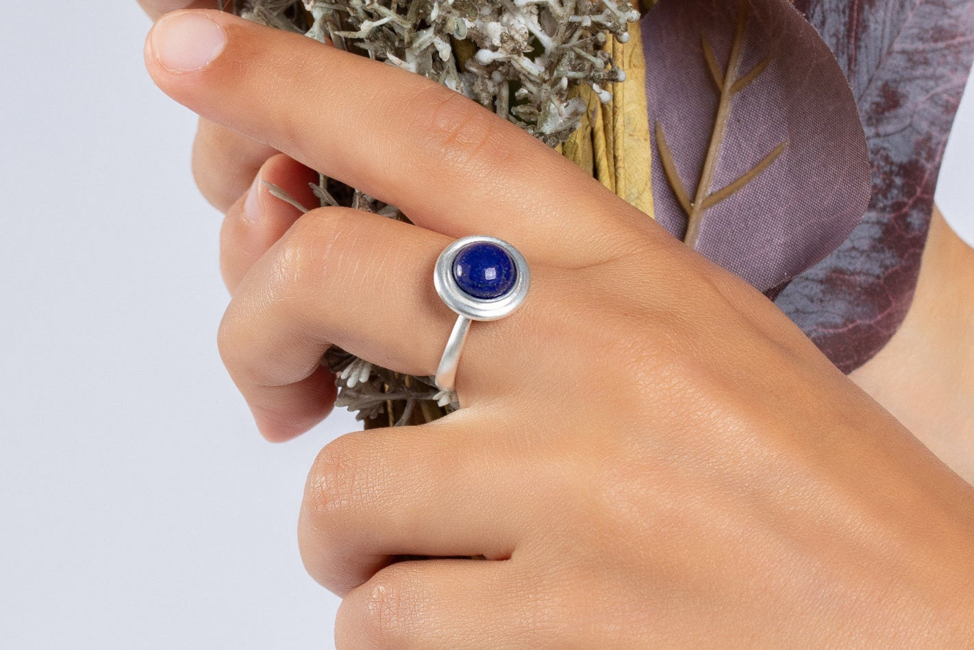 Strahlendes mattiertes und poliertes 925/- Sterlingsilber trifft auf einen zauberhaften tiefblauen Lapis mit 2,73 Karat. Ein wertig gearbeitetes Designschmuckstück aus Sterlingsilber, welches für die Ewigkeit geschaffen ist.