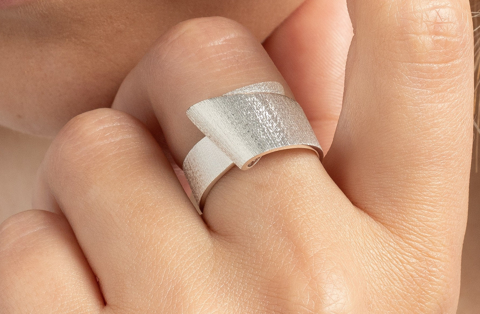 Das Einprägsamste an den Schmuckstücken von dem in Osnabrück lebenden Designer Dietmar Sebastian ist die Oberflächengestaltung. Als er in den 90er Jahren anfing, seinen Schmuck mit rauen Oberflächenstrukturen herzustellen, war dies eine kleine Sensation. Unter den Designern gehört Dietmar Sebastian zu den Minimalisten, denn Weglassen ist für ihn entscheidend. Für ihn gibt es keine schmückenden Applikationen beim Schmuck, nur die reine Form zählt.