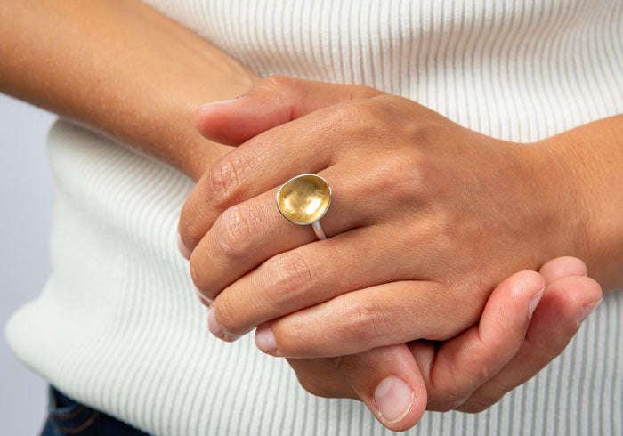Designt werden unsere ausdrucksvollen Ringe von namenhaften Designern. Eine besondere Handschrift spiegelt sich sowohl im Design als auch in der Oberflächenbearbeitung wider. Durch die hochwertige Bearbeitung sowie einen durchweg handwerklichen Charakter finden die Ringe hohen Anklang. Wir empfehlen die Ringe in Kombination mit dem passenden Ohrschmuck sowie passendem Anhänger.