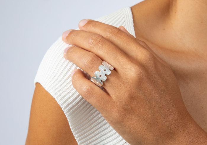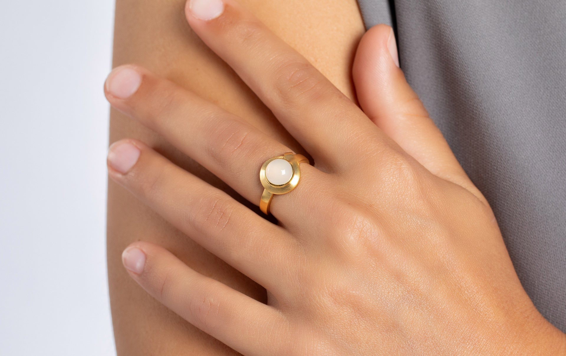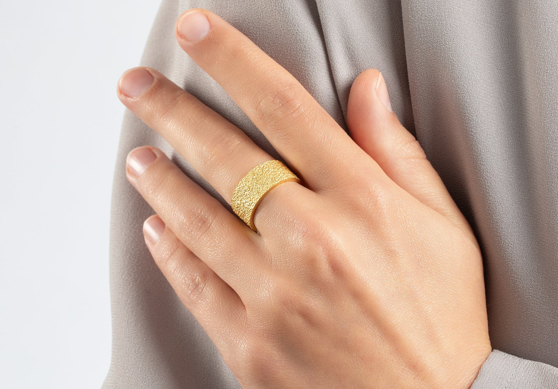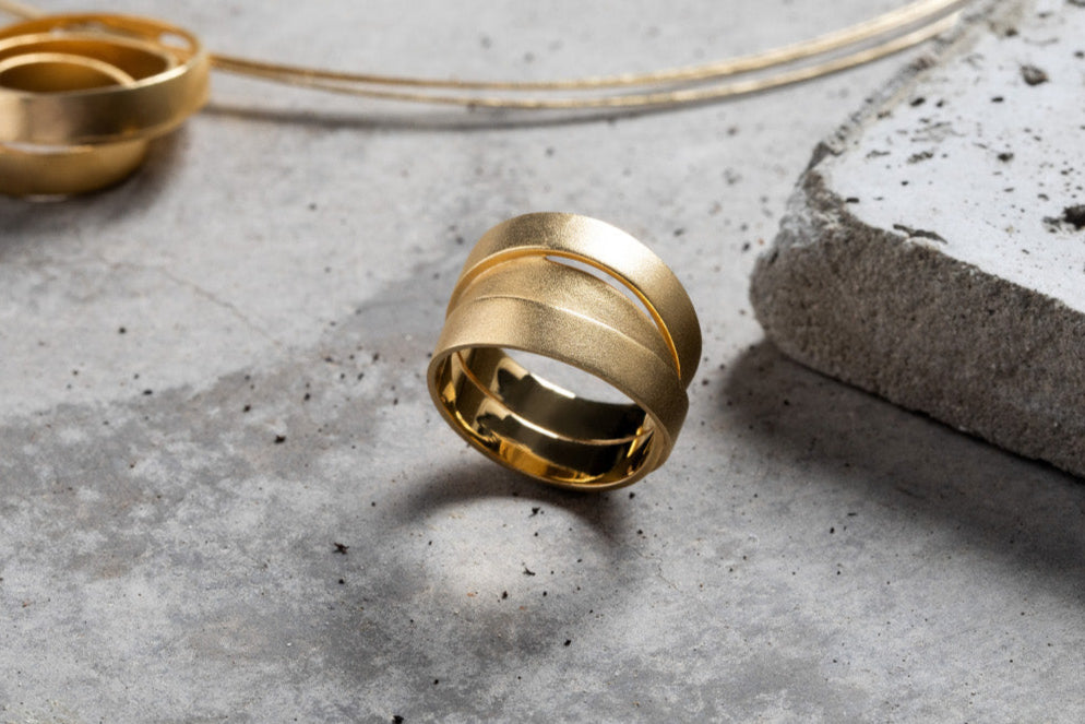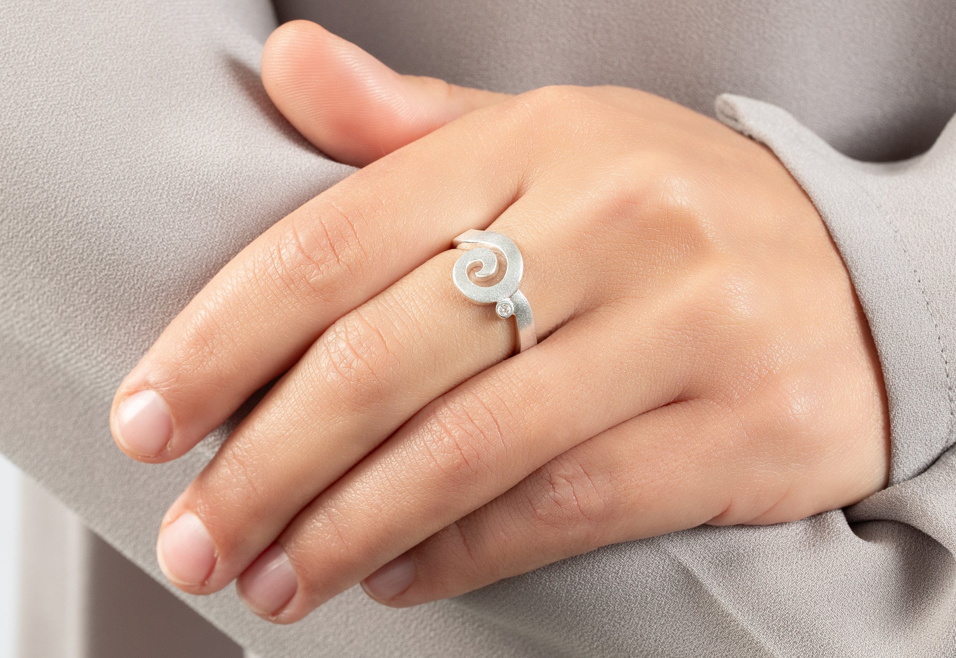 Designt werden unsere ausdrucksvollen Ringe von namenhaften Designern. Eine besondere Handschrift spiegelt sich sowohl im Design als auch in der Oberflächenbearbeitung wider. Durch die hochwertige Bearbeitung sowie einen durchweg handwerklichen Charakter finden die Ringe hohen Anklang. Wir empfehlen die Ringe in Kombination mit dem passenden Ohrschmuck sowie passendem Anhänger.