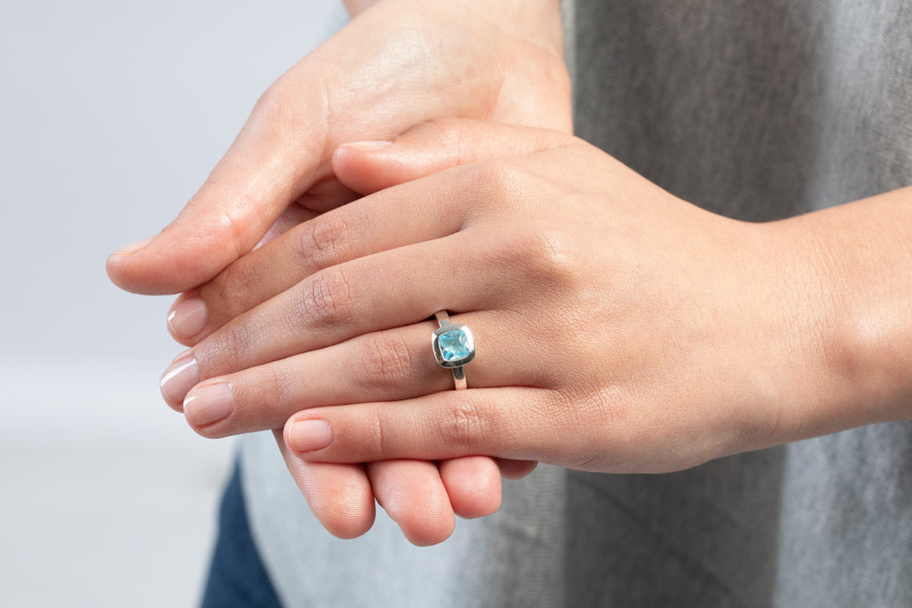 - Nun kannst du deine perfekte Ringgröße ermitteln. Der runde Ausschnitt sollte den Finger eng umschließen.
