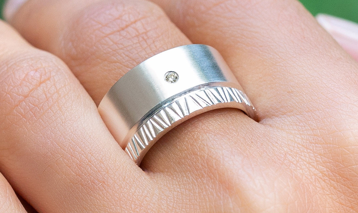 Designt werden unsere ausdrucksvollen Ringe von namenhaften Designern. Eine besondere Handschrift spiegelt sich sowohl im Design als auch in der Oberflächenbearbeitung wider. Durch die hochwertige Bearbeitung sowie einen durchweg handwerklichen Charakter finden die Ringe hohen Anklang. Wir empfehlen die Ringe in Kombination mit dem passenden Ohrschmuck sowie passendem Anhänger.