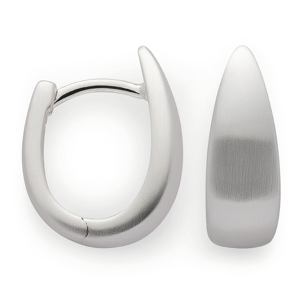 Diese modernen Creolen "Saddle" aus mattiertem 925/- Sterlingsilber überzeugen durch ein leicht abgerundetes Design in angedeuteter Sattelform. Das eingebaute Scharnier garantiert ein leichtes An- und Ausziehen des Ohrschmucks und einen besonders hohen Tragekomfort. Auch in weiteren Versionen verfügbar.