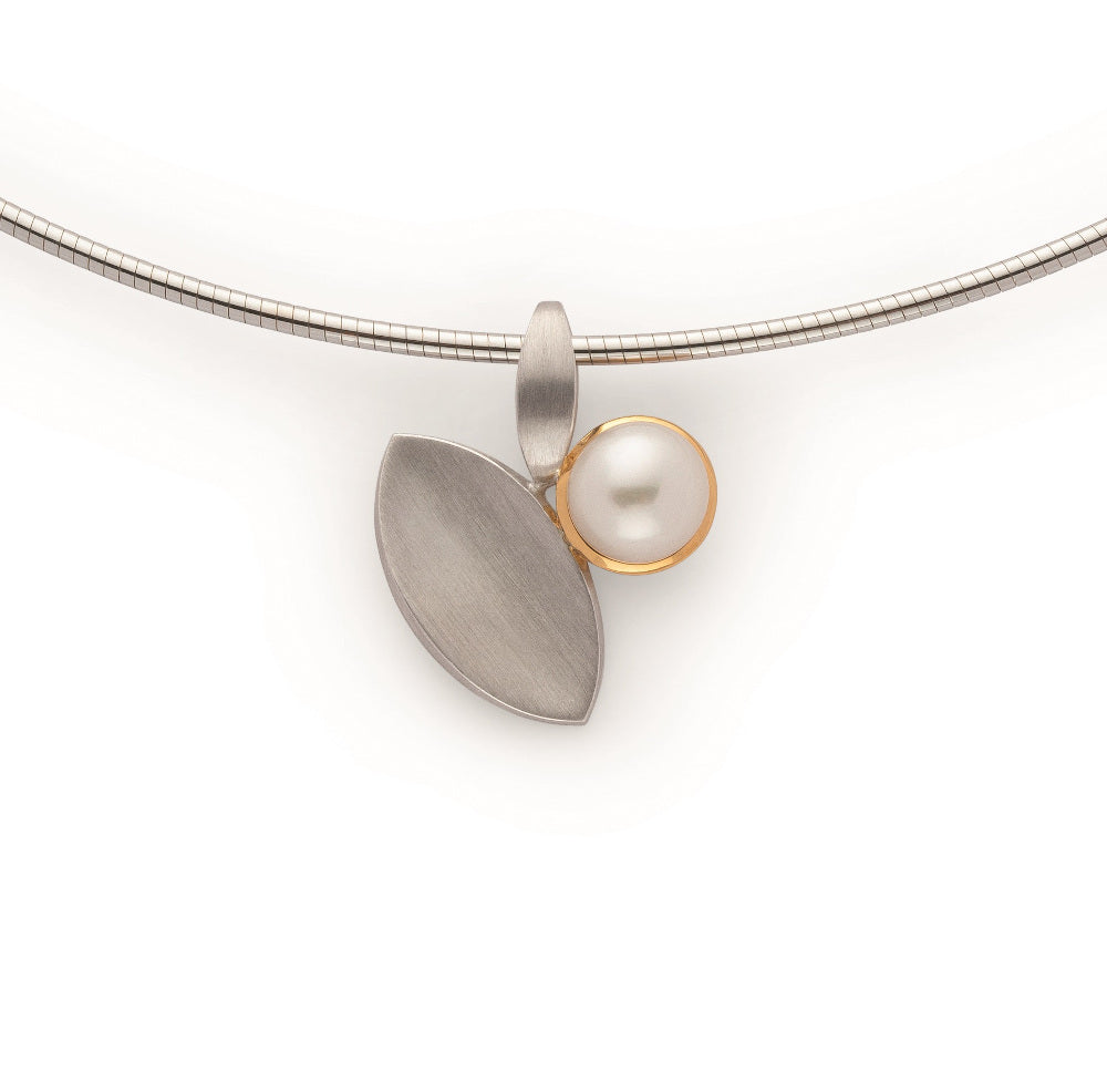 Eine weiße Süßwasserzuchtperle in 18 Karat vergoldeter und polierter Fassung schmiegt sich wie Morgentau an eine strichmattierte Blattform aus rhodiniertem Sterlingsilber. Die "Dewdrop Collection" vereint florale Natürlichkeit mit zeitloser Eleganz und Ästhetik. Der Anhänger ist mit zweierlei Ohrsteckern erhältlich, wählen Sie zwischen zeitlosen vergoldeten Perlenohrsteckern oder der wunderschönen Blattform, um die Ausstrahlung des Anhängers optimal zu betonen. Oder doch eine Kombination beider Stecker? Wir empfehlen für diesen Anhänger den Omega-Reif 26991.