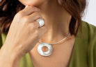 Rosettenförmiger Anhänger "Le Jardin" aus der Feder der deutschen Designerin Dr. Sabine Brandenburg-Frank. Kratzmattiertes und an den Kanten poliertes Sterlingsilber formt sich dynamisch zu einem wunderschönen Statement-Halsschmuck, für welchen wir einen etwas kräftigeren Omega-Reif empfehlen, z.B. 27030. Dieser Anhänger ist mit dazugehörigem Ring aus derselben Designlinie "Le Jardin" erhältlich. Mit Liebe zum Detail in massiver Ausführung gefertigt.