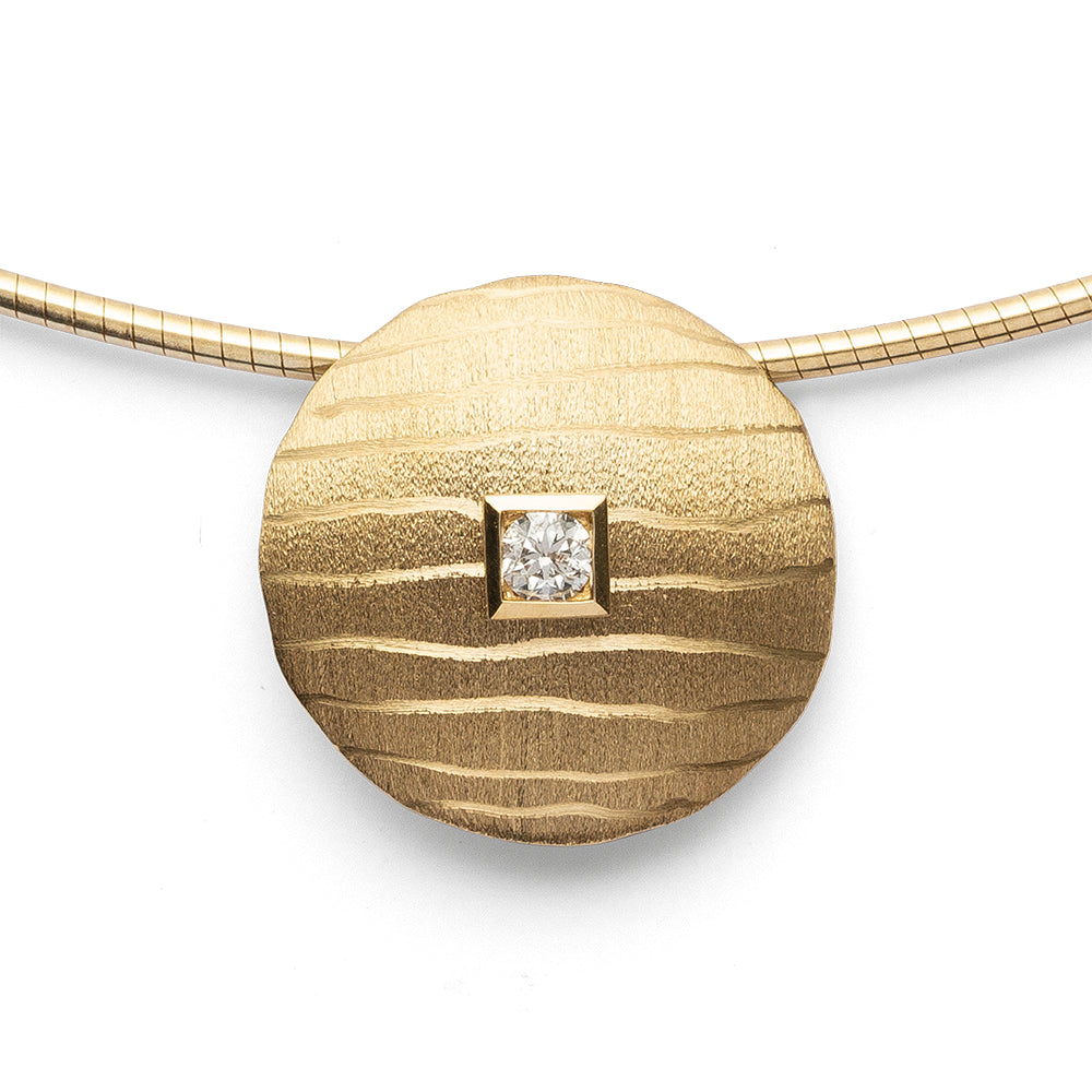 En funklende, brillantslebet 0,06 karat rund diamant (W-SI) i firkantet fatning er det strålende højdepunkt ved dette designerstykke i 18 karat guld fra Bastian Inveruns nye guldkollektion. En fin, håndlavet overfladestruktur sikrer den særligt høje udstråling af denne karakteristiske halskæde med et usynligt ophæng. Perfekt i kombination med den matchende ring og øreringe. Fås eksklusivt i specialbutikker!