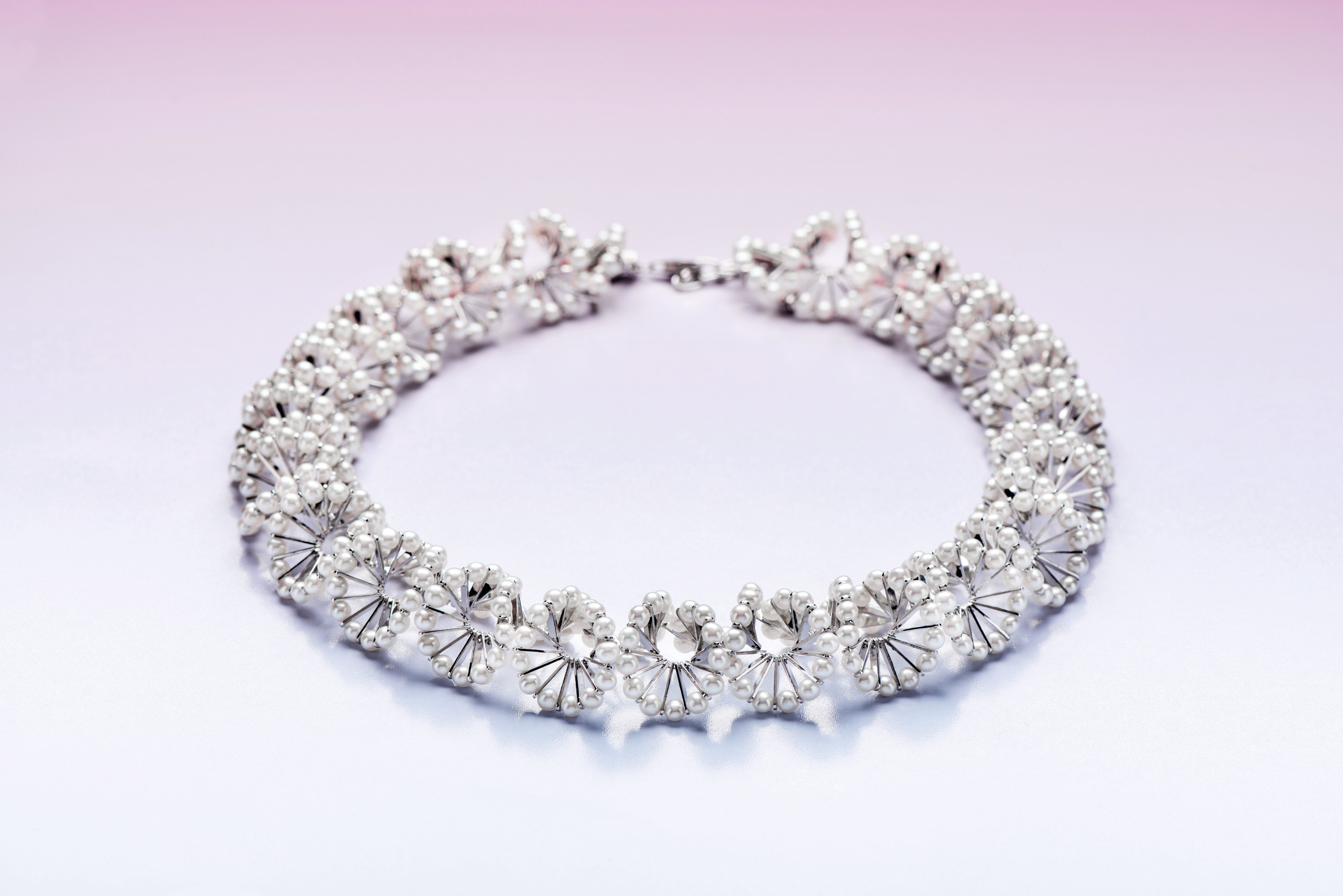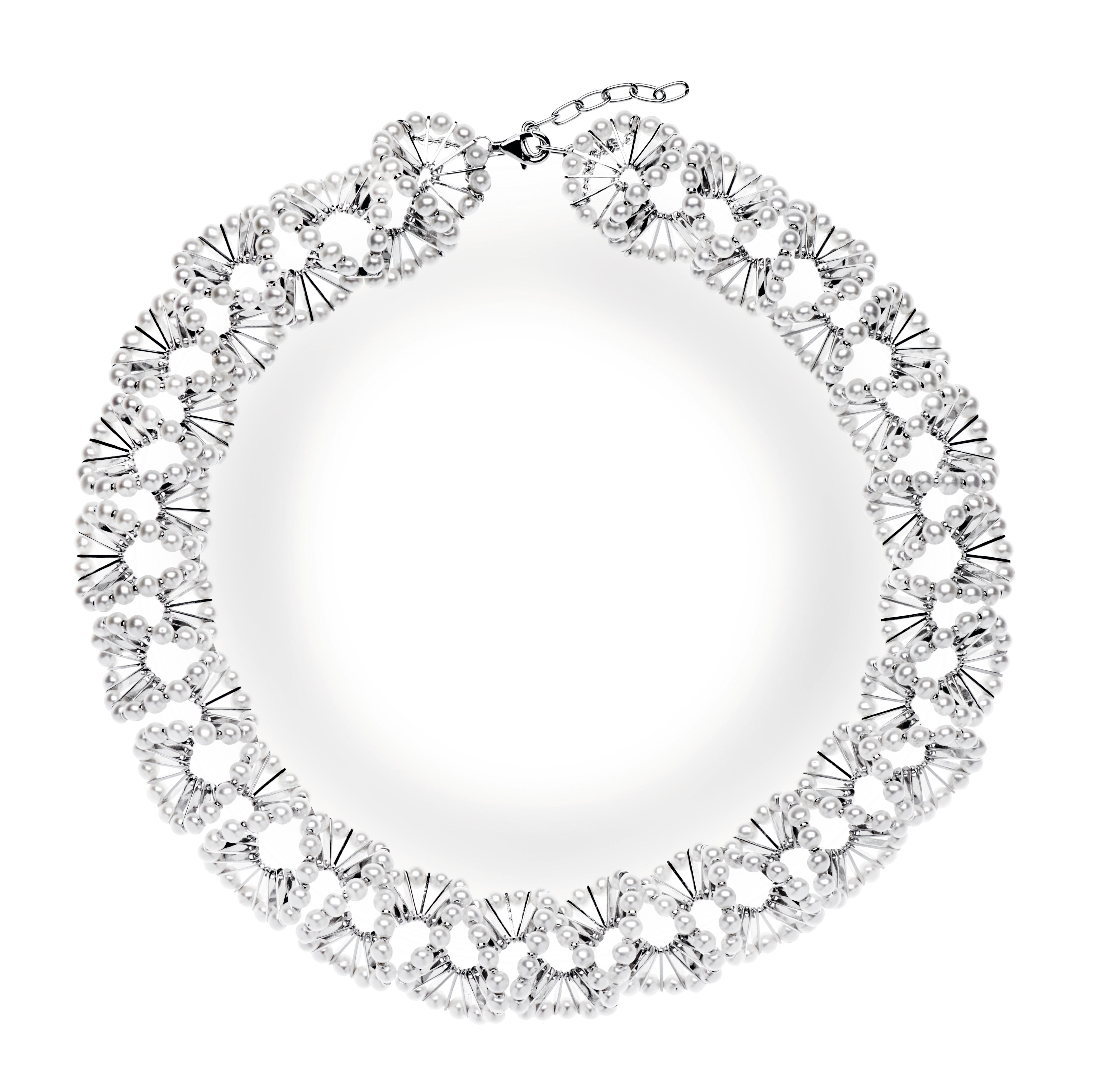 Mit ‚Lilith‘ kreierte die Designerin Lina Lundberg ein Meisterwerk der Schmuckkunst. In gleichmäßigen Wellenbewegungen reihen sich alleine beim Collier mehr als 450 Perlen (insgesamt 103,87ct) einträchtig aneinander. Jede Perle, jedes Element wird von Hand aufgezogen und anschließend in seine einzigartige, geschwungene Form gebracht. ‚Lilith‘ schmiegt sich sanft an den Körper, zeichnet seine Formen nach und schmückt so stets in Perfektion. Weiche natürlich Formen, warmes Sterlingsilber, strahlende Perlen und außergewöhnliches Design – das ist es, was ‚Lilith‘ zu etwas ganz Besonderem macht.