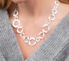 Geometrisch-inspirierte, fließende Formen neu inspiriert - Dieses aus mattiertem 925/-Sterlingsilber gefertigte Designcollier "Circles" mit einer Länge von 46cm zuzüglich 4cm Verlängerungsoption und niedlichem bastian Logo-Anhänger besticht durch das charismatische Wechselspiel aus Größe und Form. Unterschiedlich große, runde und zugleich leicht gewellte Schmuckelemente, die durch kleine gelötete und dann fein versäuberte Ösen fest miteinander verbunden sind, ergeben zusammengefügt und interessant angeordnet ein wunderschönes, flexibles Collier mit einem besonders einzigartigen Look und Formverlauf. Die Längenverstellbarkeit und der polierte Karabiner mit sehr gutem Schließmechanismus versprechen einen hohen Tragekomfort und vielzählige Einsatzmöglichkeiten, passend zu jedem Outfit und Ausschnitt. Ein wunderschönes Designschmuckstück aus der Feder der Designerin Nadine Resch, welches sich durch besonders viel Stil und Ausstrahlung behauptet und sich somit deutlich von "0-8-15-Schmuck" abhebt.