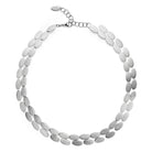 En sporty, men elegant halskæde, der garanteret vil vende hoveder! Talrige ovale elementer kombineres for at skabe dette unikke designerstykke. Halskæden er lavet af mat 925 sterlingsølv og udtrykker en feminin karakter. Med en længde på 43 cm og mulighed for forlængelse på 5 cm, smyger dette smykke sig behageligt om bærerens hals.