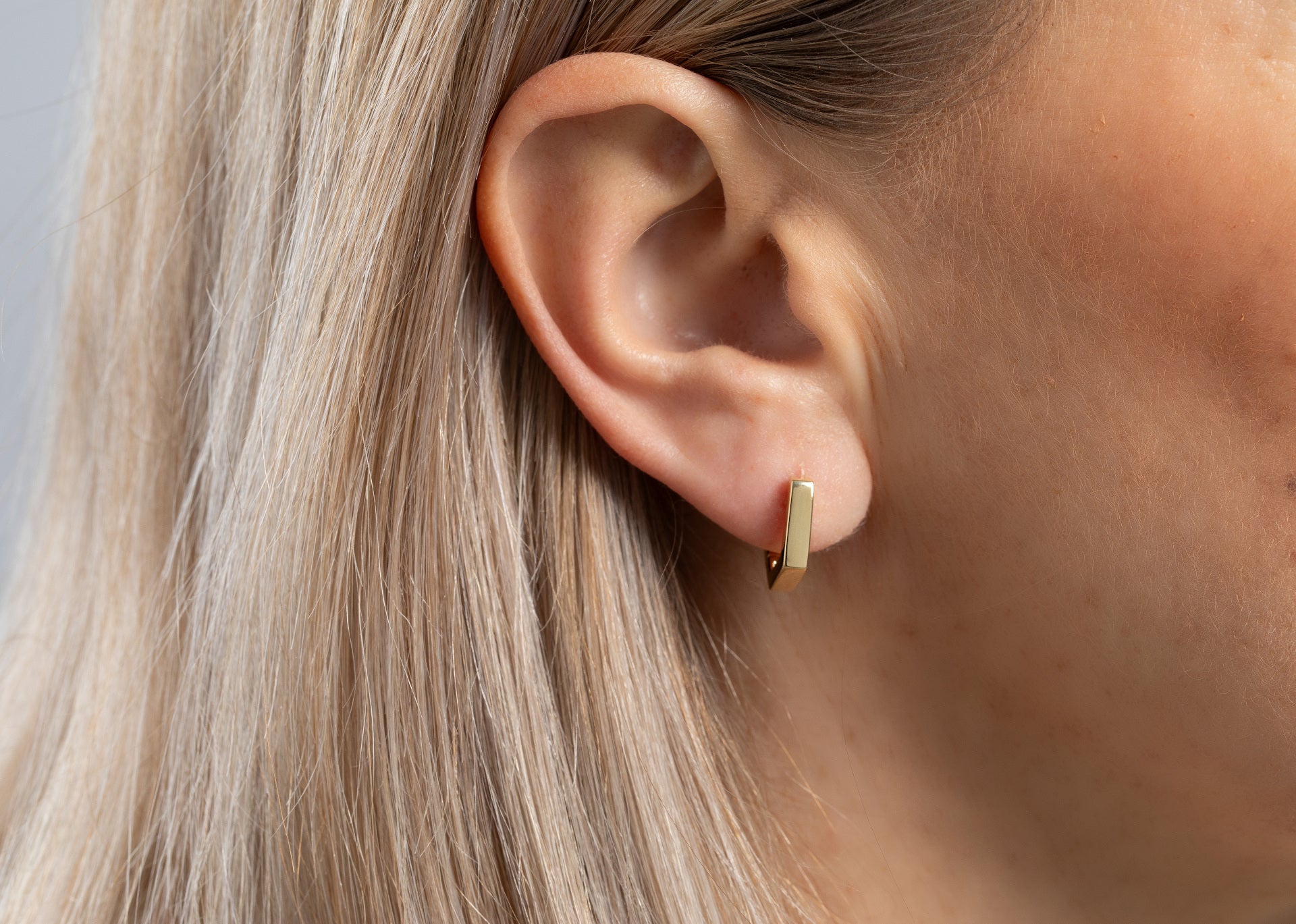 Denne moderne hoop-ørering lavet af poleret og forgyldt 925 sterlingsølv imponerer med sit stilfulde, kantede design. Uanset om de er til hverdagsbrug eller til en særlig lejlighed, tilføjer disse sporty, men elegante øreringe et karakteristisk, men feminint touch til dit look. Det indbyggede hængsel sikrer exceptionel komfort og nem åbning af disse formstøbte øreringe. Fås også i rent sølv.