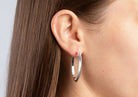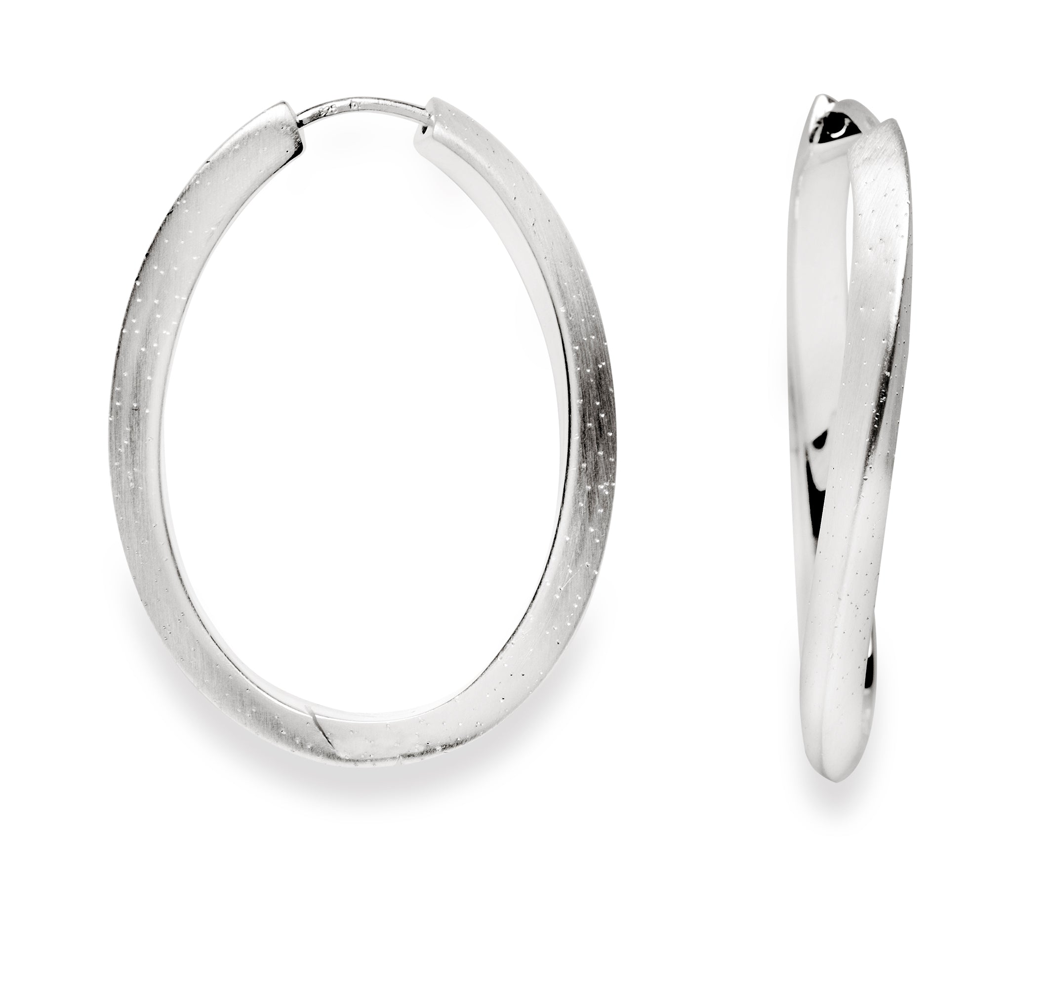 Denne elegante hængslede hoop-ørering i diamantbelagt 925 sterlingsølv imponerer med sit sofistikerede, buede design. Uanset om den bæres med et sporty eller sofistikeret outfit, vil dette smykketilbehør tilføje et stilfuldt, men feminint touch til dit look. Fås også i andre versioner (f.eks. forgyldt).