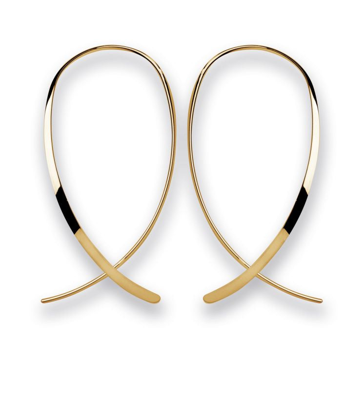 Moderne ørekroge (som blot trækkes gennem øreflipperne) lavet af forgyldt 925 sterlingsølv med en poleret finish. Et cool must-have til den moderne trendbevidste kvinde. Fås også med andre finish.