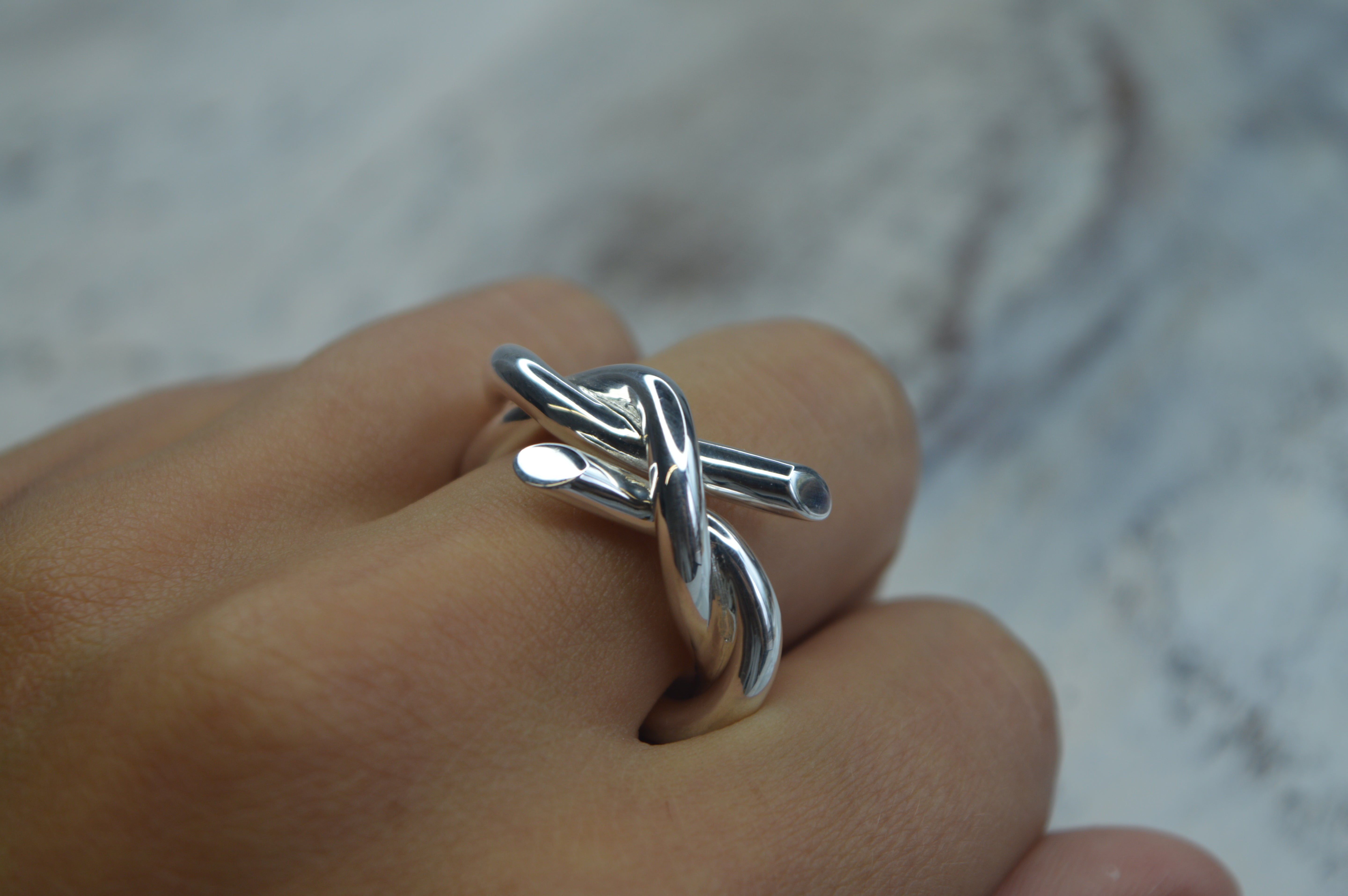 En tilsyneladende endeløs, dynamisk op-og-ned-bevægelse af to sammenflettede stivere lavet af poleret 925 sterlingsølv – dette er oprindelsen til navnet på Bastian Inveruns helt nye "Infinite Twist Collection", som denne solidt fremstillede ring med et sofistikeret og originalt design tilhører. Et tidløst, men trendy smykke til næsten enhver lejlighed (design af Philipp og Dan Reiffert).
