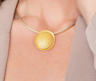 Design pur: Die raffinierte, äußere Oberflächentextur ist der absolute Hingucker dieses neuen Statement-Schmuckstücks "Wabi-Sabi" von bastian inverun aus 18 Karat gelbgoldvergoldetem 925/-Sterlingsilber mit ansonsten sandmatter Oberfläche. Die Doppellagigkeit sowie die konkav als auch konvex geformten Scheiben zeichnen diesen prachtvollen Anhänger mit charakteristischem Goldschmiedecharakter aus und machen es zu einem Herzensdesign in besonderer Manufakturqualität, an welchem man sich einfach nicht sattsehen kann. Perfekt in Kombination mit dem dazugehörigen Ohrschmuck. Zu diesem Anhänger, der von dem Osnabrücker Designer Dietmar Sebastian designt wurde, empfehlen wir einen Reif mit einem etwas breiteren Durchmesser, z.B. Artikel 43470 oder Artikel 43500.