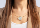 Dette stilfulde vedhæng med et cirkulært design og en diameter på næsten 3 cm er særligt iøjnefaldende takket være dets to farvenuancer: mat, rent og forgyldt 925 sterlingsølv. Den ridsematte overflade giver vedhænget et udtryksfuldt, men tidløst look. Uanset om det er til hverdagsbrug eller en helt særlig lejlighed, kan dette vedhæng kombineres på mange måder. Matchende øreringe og en ring fås også til vedhænget.