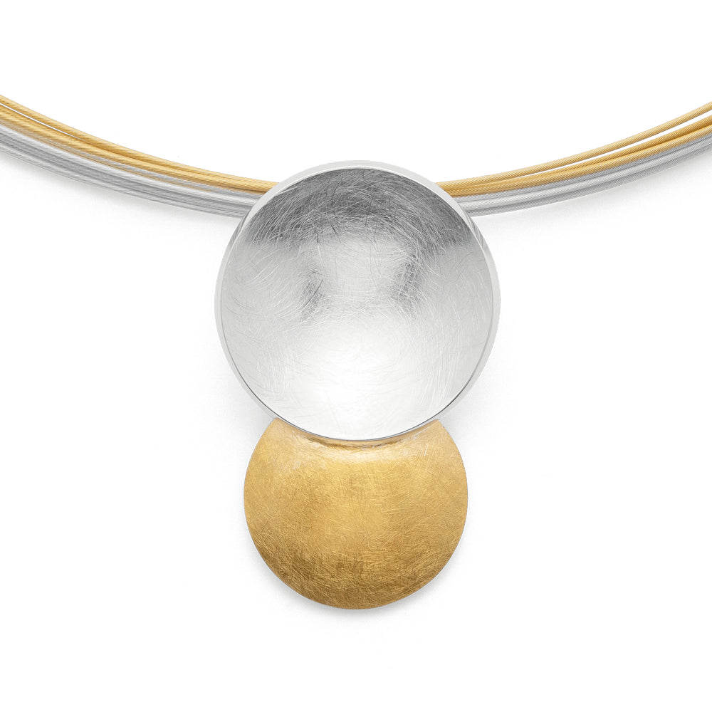 Dette stilfulde vedhæng i 925 sterlingsølv har to skålformede, modsatrettede, buede elementer i et tofarvet design. Den ridsematte finish giver vedhænget et udtryksfuldt, men tidløst look. Uanset om det er til hverdagsbrug eller en særlig lejlighed, kan dette vedhæng kombineres på mange måder. Fås med matchende øreringe.