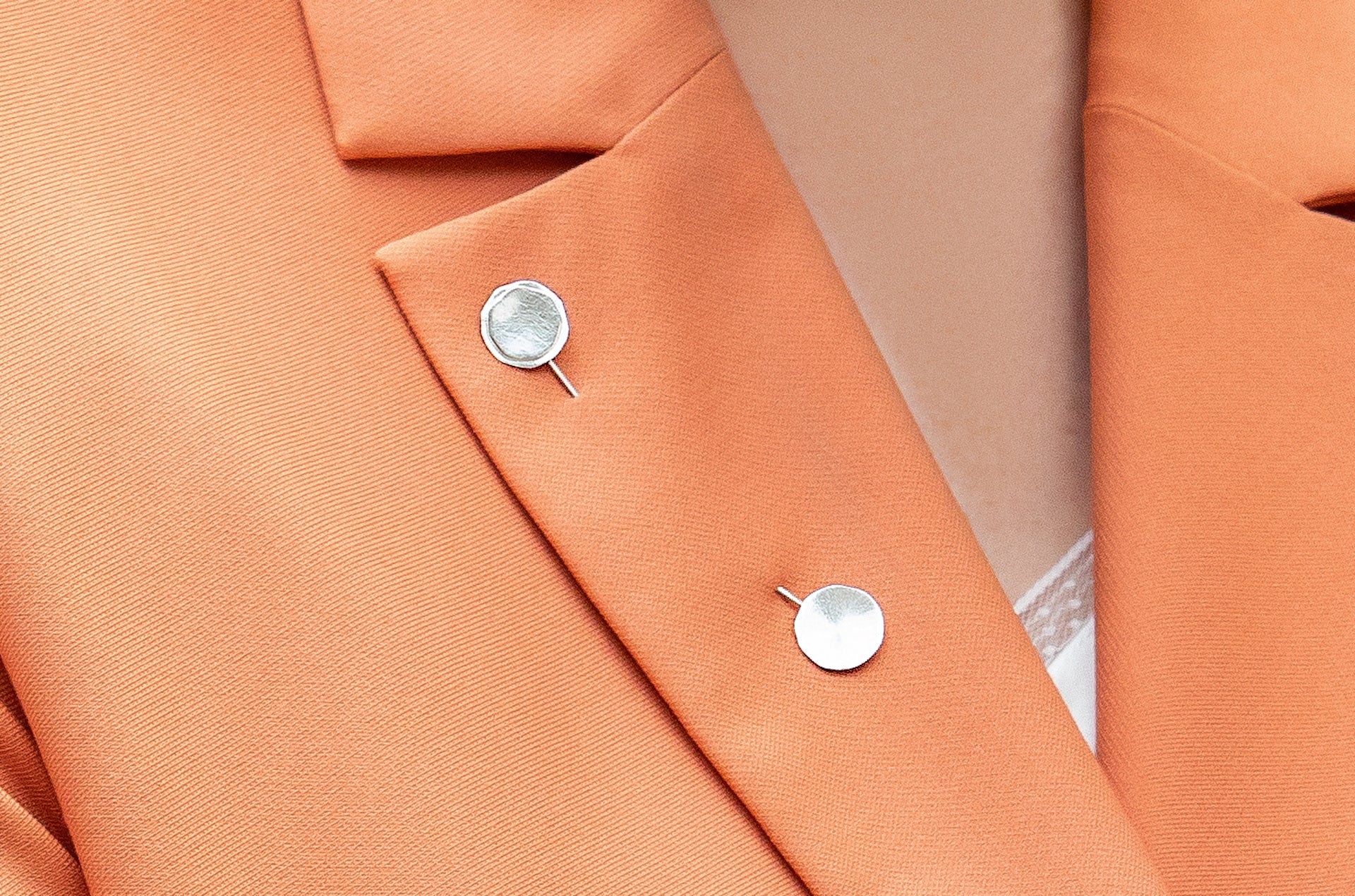 En geometrisk inspireret broche lavet af 925 sterlingsølv med et karakteristisk overfladedesign. Fine linjer er håndskåret ind i overfladen med specielle børster. Et sandt statement-smykke fra den Osnabrück-baserede designer Dietmar Sebastian, dets håndværk gør det til et ægte blikfang. Fås også i tofarvet og med en matchende ring og øreringe.