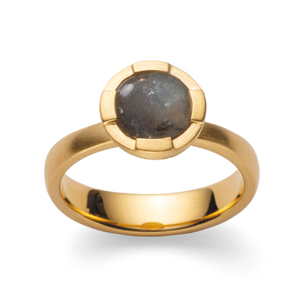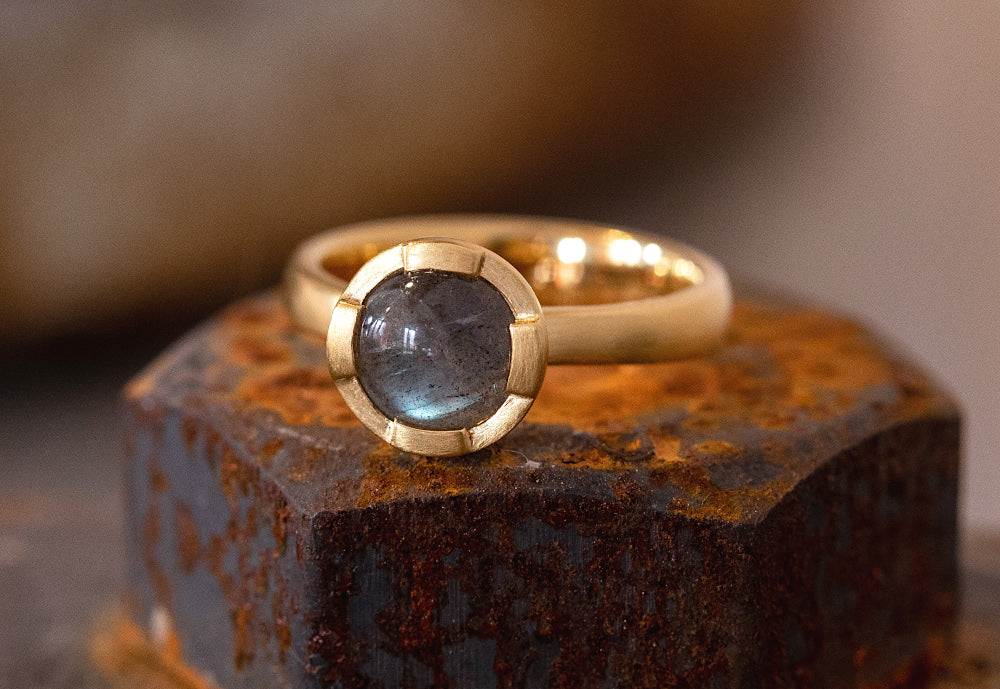 18 karat guldbelagt 925 sterlingsølv med mat finish møder en magisk iriserende 1,54 karat labradorit. Et smukt fremstillet designersmykke med en unik karakter, skabt til at vare evigt. Perfekt i kombination med de matchende øreringe og vedhæng.
