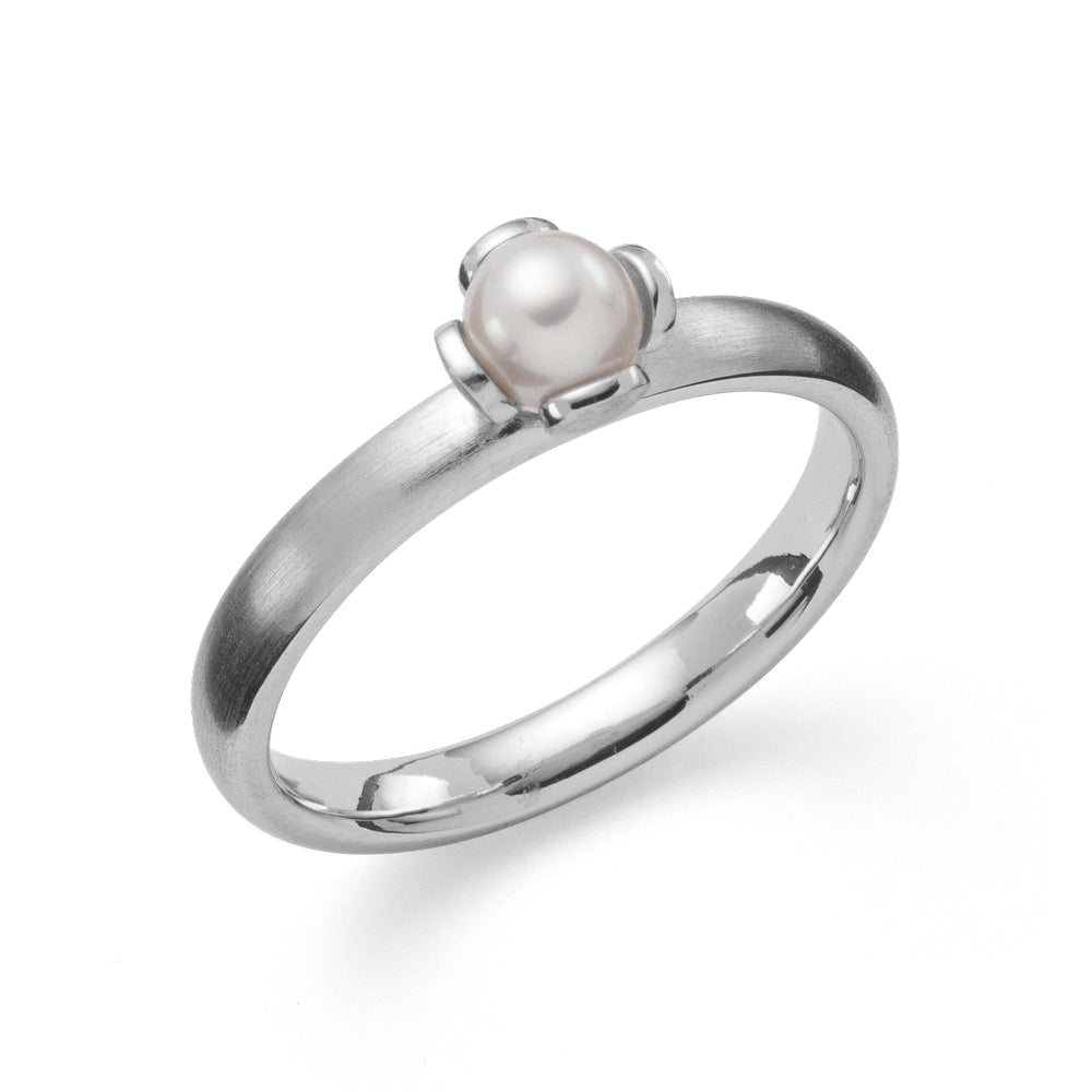 Perler repræsenterer renhed, elegance og uforlignelig æstetik. Denne elegante "Magic Pearl"-ring, fremstillet af rhodineret (anløbsbestandigt) 925 sterlingsølv med en mat finish og polerede kanter, udtrykker perfekt perlen som et symbol på tidløs skønhed. Især den bladlignende indfatning gør ringen til et virkelig iøjnefaldende smykke. Designet med sans for detaljer af den innovative designer Nadine Resch, fås den med matchende øreringe og et matchende vedhæng.