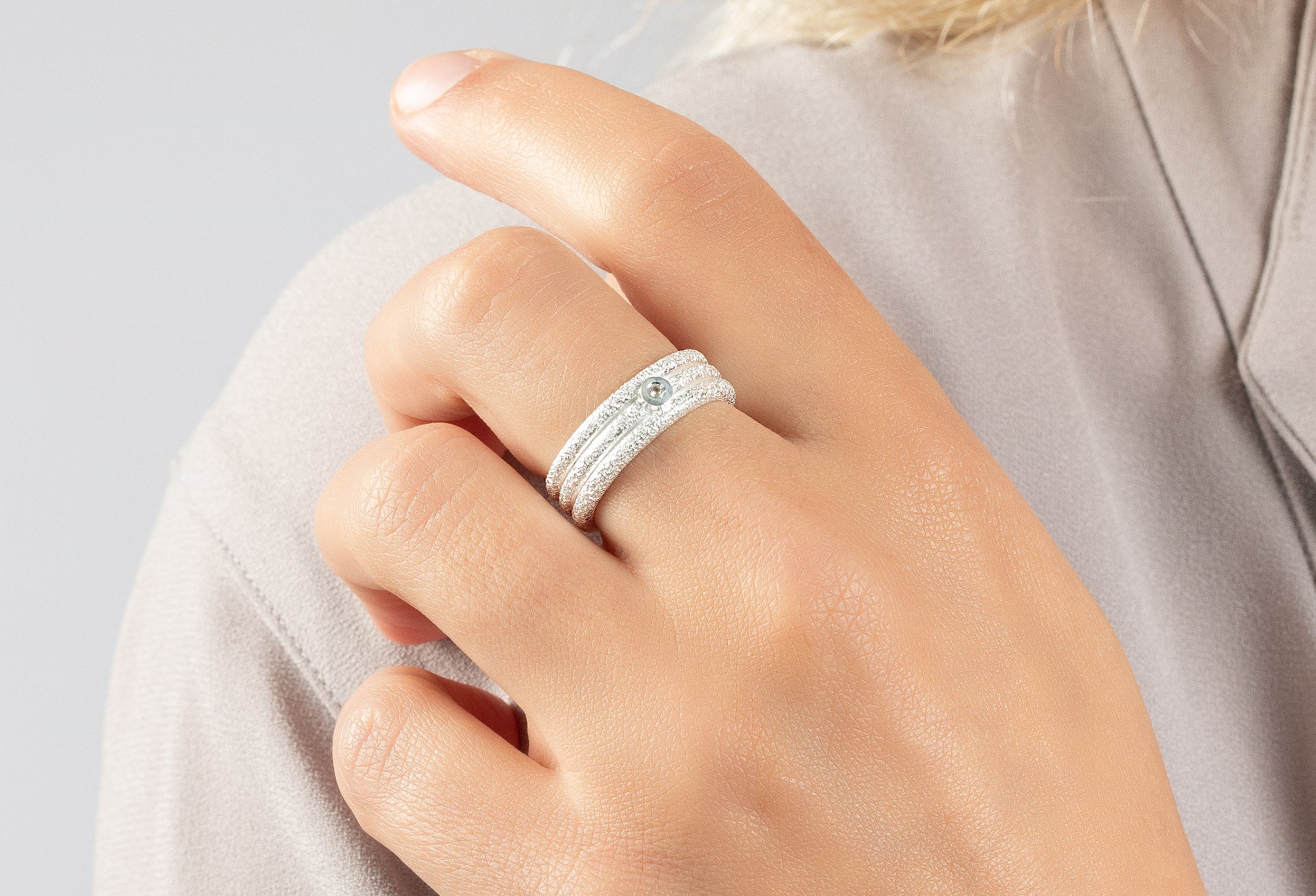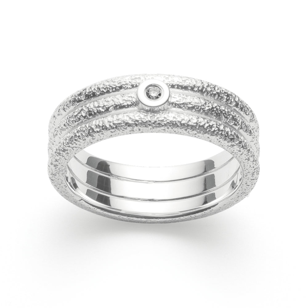 925 sterlingsølv med en mat og børstet finish danner denne tidløse, men elegante ring. Den 0,02 karat hvide topas, placeret centralt og indfattet i en poleret fatning, giver smykket en særlig udstråling. Perfekt kombineret med et matchende vedhæng og øreringe.