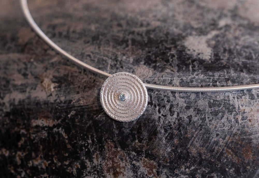 "The Round 'n' Round Collection" - eine brandneue, geometrisch inspirierte Designlinie aus der Feder des Designers Thomas Mayer. Mattiertes und gebürstetes 925/- Sterlingsilber in attraktiver Ringoptik wird durch einen strahlenden Blautopas (0,03ct) gekrönt. Die versteckte Aufhängung sorgt für die besonders elegante Ausstrahlung dieses attraktiven Halsschmucks. Wir empfehlen für diesen Anhänger einen Zubehör-Reif. Mit passenden Ohrsteckern sowie in weiteren Ausführungen erhältlich.