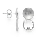 Moderne Designohrstecker aus poliertem und sandmattiertem 925/- Sterlingsilber bestechen durch zwei aneinander gereihte Schmuckelemente. Das schalenförmige Design trifft auf funkelnde Brillanten mit insgesamt 0,02ct und wurden von der Düsseldorfer Designerin Nadine Resch kreiert. Ein perfektes Accessoire für den Alltag oder einen ganz besonderen Anlass.