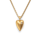 Dieser mattierte und zugleich vergoldete Anhänger in niedlicher Herzform aus 925/- Sterlingsilber ist ein besonderes symbolträchtiges Geschenk, der jedes Frauenherz höher schlagen lässt. Gekrönt wird der zeitlose Herzanhänger durch einen funkelnden Diamant im Brillantschliff (0,02ct, W-SI). Ein zauberhaftes Design aus der Feder von Nadine Resch.