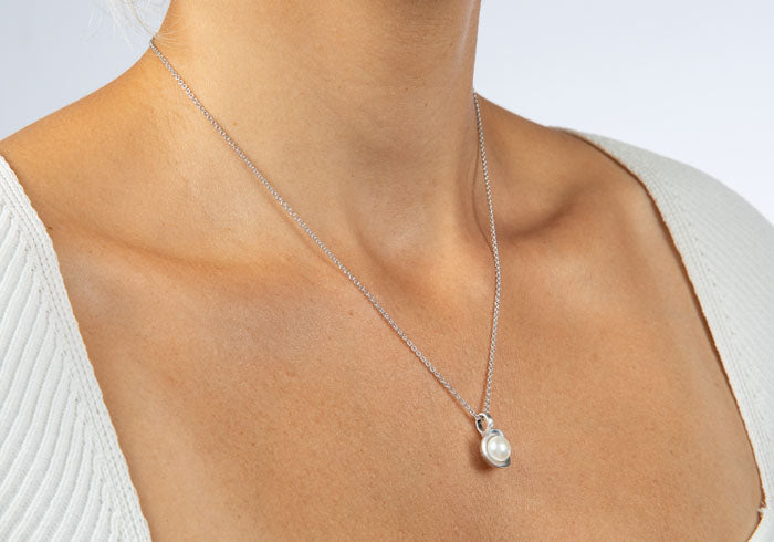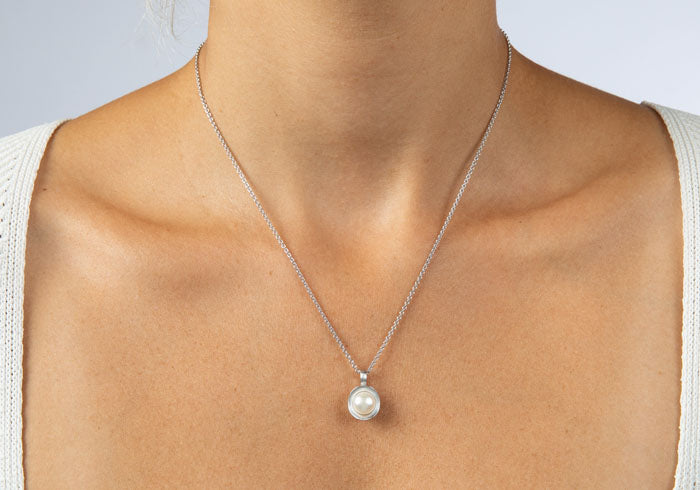 Eine Schimmernde Süßwasserzuchtperle (2,66ct) trifft auf mattiertes Sterlingsilber: Eine klassische und zeitlose Kombination von wertigen Materialien, welche insbesondere durch die massive Verarbeitung des rhodinierten (anlaufgeschützten) Anhängers zur Geltung kommt. Als Set mit passendem Ring und Ohrstecker kommt dieser Anhänger (Design by Catherine Niegel) besonders stark zum Ausdruck.