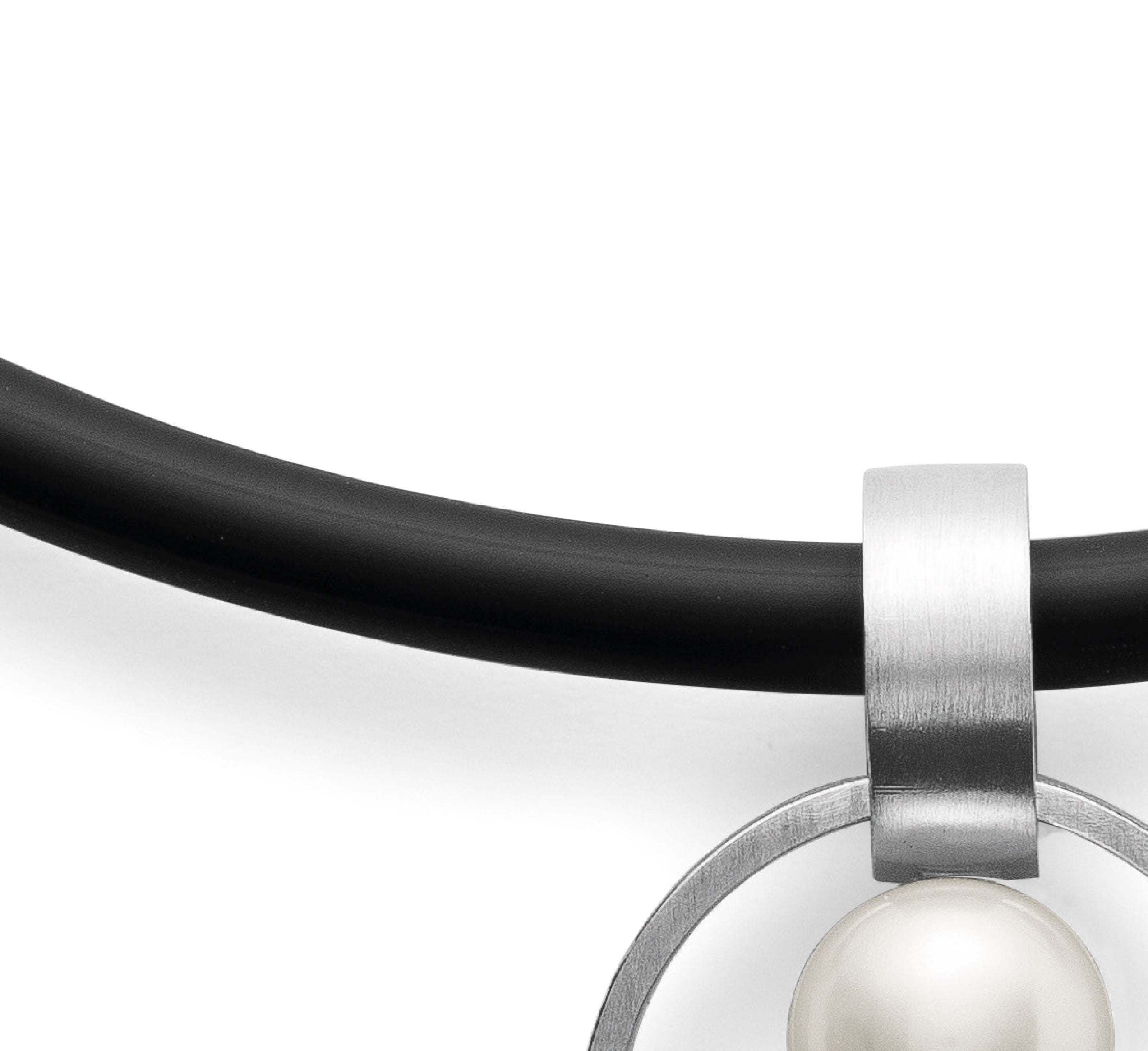 Sportlich-elegantes Kautschukband in der Farbe schwarz mit polierten Endkappen aus 925/- Silber, Bajonettverschluss und einer Stärke von 4,0 mm für Anhänger mit einer breiteren Öse. Erhältlich in 45 cm.