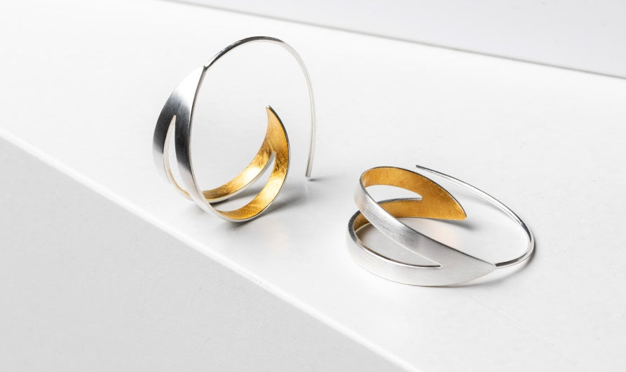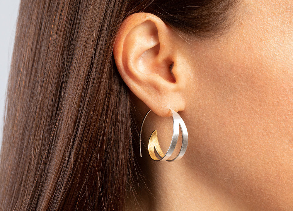 Modern, innovativ und dennoch zeitlos-elegant: Must-Have-Creolen (werden einfach durch das Ohrloch durchgezogen) aus 925/- Sterlingsilber mit innenliegender Teilvergoldung, leichtem Formverlauf und strich- sowie kratzmattierter Oberflächengestaltung im attraktiven Wechselspiel - das perfekte Schmuckstück für zahlreiche Anlässe und Outfits. Mit Liebe zum kleinsten Detail designt von der Designerin Nadine Resch aus Düsseldorf.